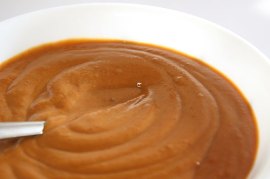 7. Simmer peanut sauce until thick and season with the lemon or lime juice.