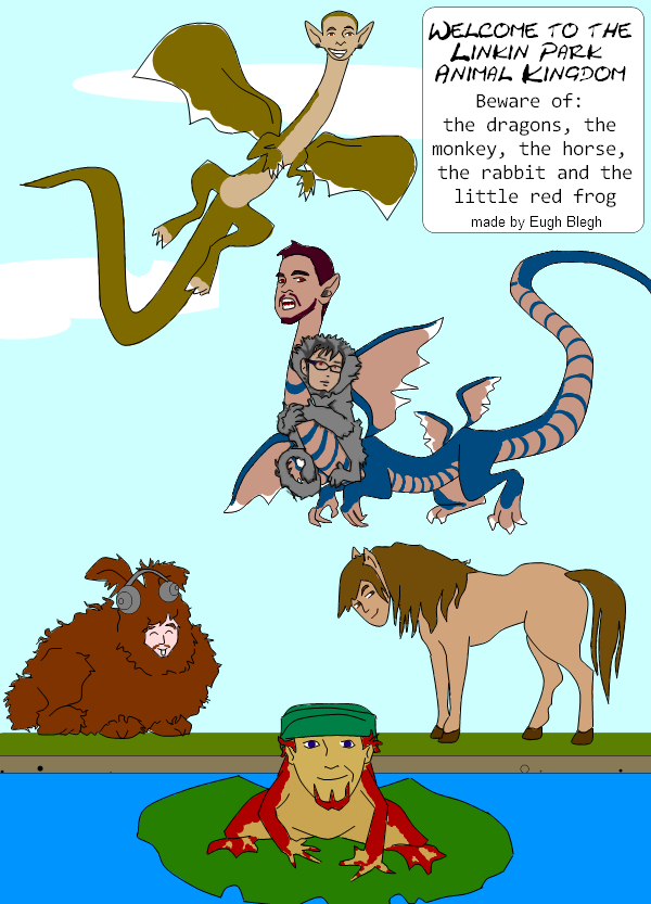 Anyway… I figured to combine all my creations into one complete picture. So… Here’s the complete Linkin Park animal kingdom: