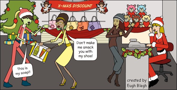 I rather do my holiday shopping a lil earlier. I hate to be in an overcrowded store with people going crazy at the discount department, fighting over some silly thing like I don’t know, a box of soap, chucking shoes at one another and what-not… (People go nuts when they’re doing their holiday shopping, it’s dangerous I tell ya!).