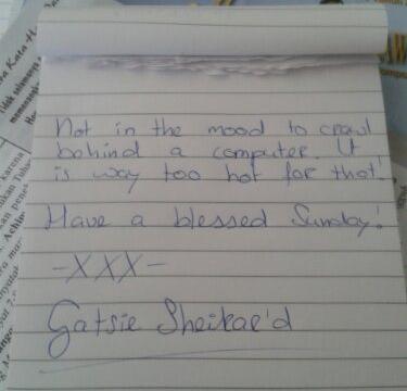 Note Posted on August 4, 2013August 4, 2013 by gatsie Just testing the WordPress app on my new phone… How do you like my handwriting?? Share this: Click to share on X (Opens in new window) X Click to share on Facebook (Opens in new window) Facebook Click to share on Pinterest (Opens in new window) Pinterest Like Loading... Related