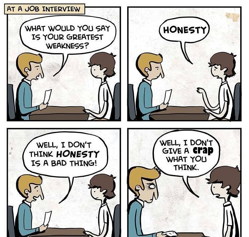 So I sit there with this lady. She has my resume and tells me what the job is and starts firing random questions I’ve heard so many times before during previous job interviews. So far so good, I thought. Until she decided to bring in her fat boss after 10 minutes. And aside from whatever followed next, he seemed like a nice guy, don’t get me wrong. She seemed like a nice lady too. But that’s when the sarcastic side effect of my foggy mind rose up. He took a glance at my resume and wanted me to introduce myself, so I did. Followed by a fire of the weirdest questions I ever had to answer from this fat guy.The dialogue went something like this: