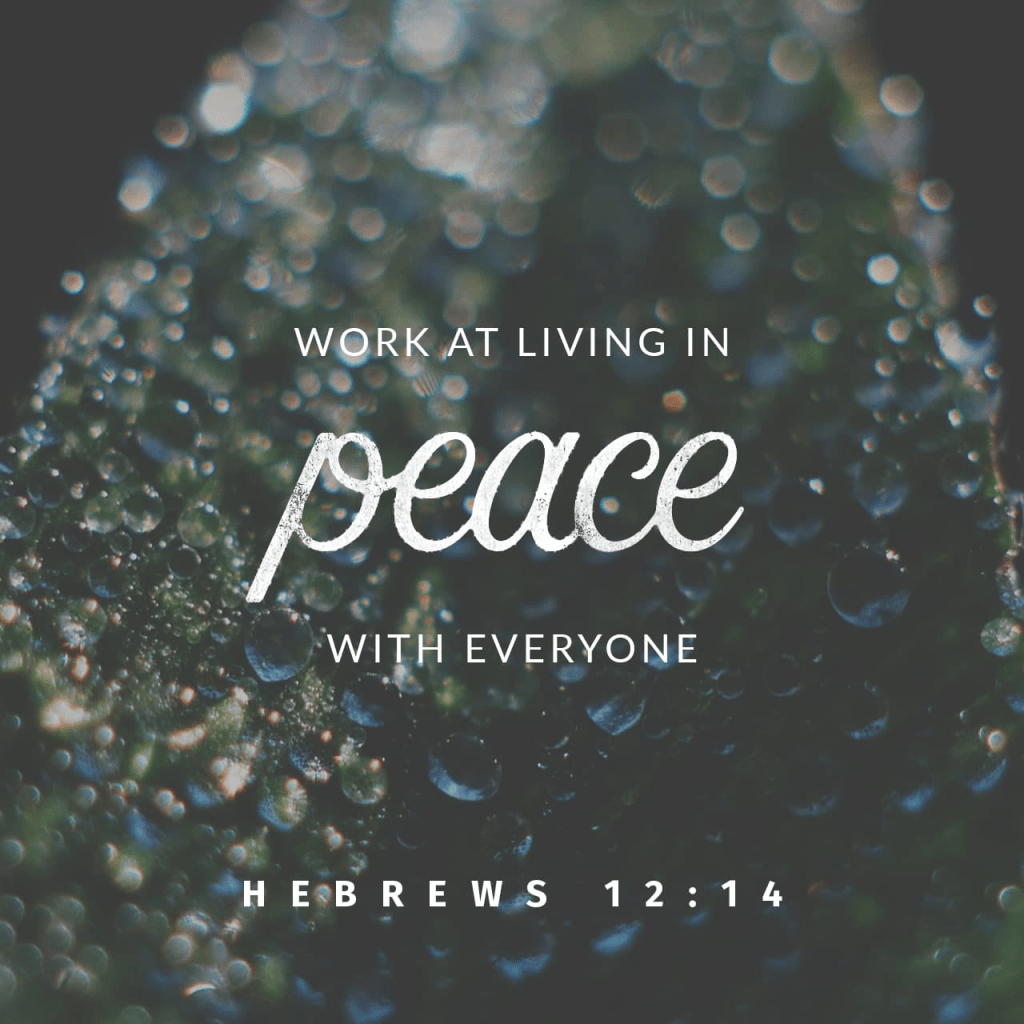 Continually pursue peace with everyone, and the sanctification without which no one will [ever] see the Lord. Hebrews 12:14 AMP https://bible.com/verse-of-the-day/heb.12.14/1643