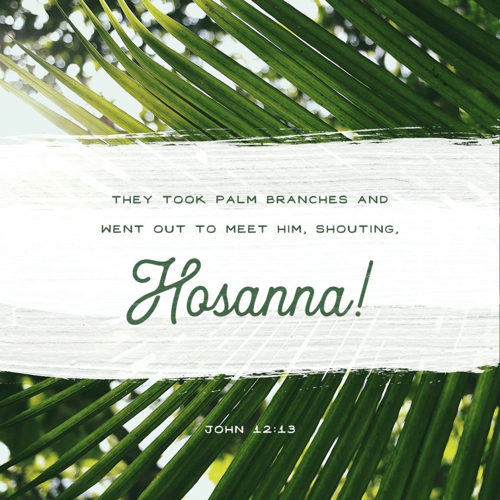 they took branches of palm trees [in homage to Him as King] and went out to meet Him, and they began shouting and kept shouting “Hosanna! B lessed (celebrated, praised) is H e who comes in the name of the Lord , even the King of Israel!” John 12:13 AMP https://bible.com/verse-of-the-day/jhn.12.13/9147