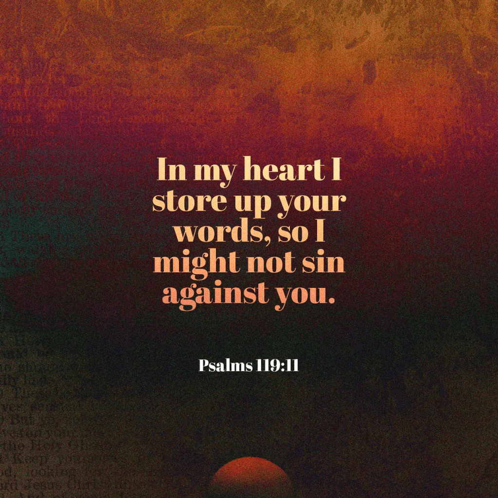 I always keep your message in my mind, so that I do not do anything bad against you. Psalms 119:11 EASY https://bible.com/verse-of-the-day/psa.119.11/36060