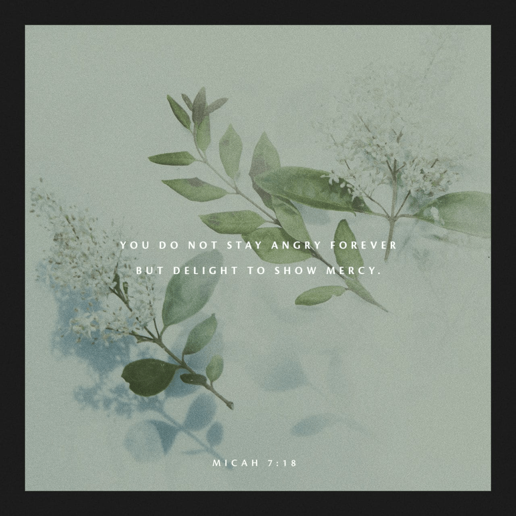 Who is a God like You, who forgives wickedness And passes over the rebellious acts of the remnant of His possession? He does not retain His anger forever, Because He [constantly] delights in mercy and lovingkindness. Micah 7:18 AMP https://bible.com/verse-of-the-day/mic.7.18/36076