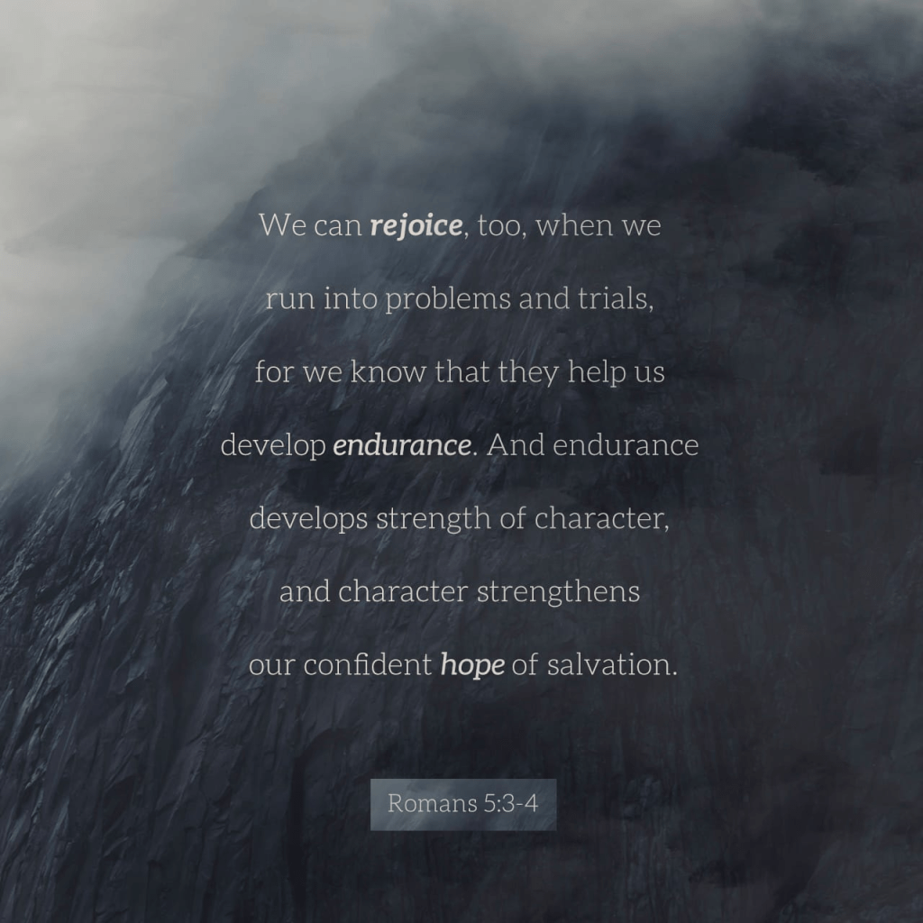 And when we remain strong, we show that we trust God. When we trust God like that, it causes us to hope for God’s help. Romans 5:4 EASY https://bible.com/verse-of-the-day/rom.5.4/5759