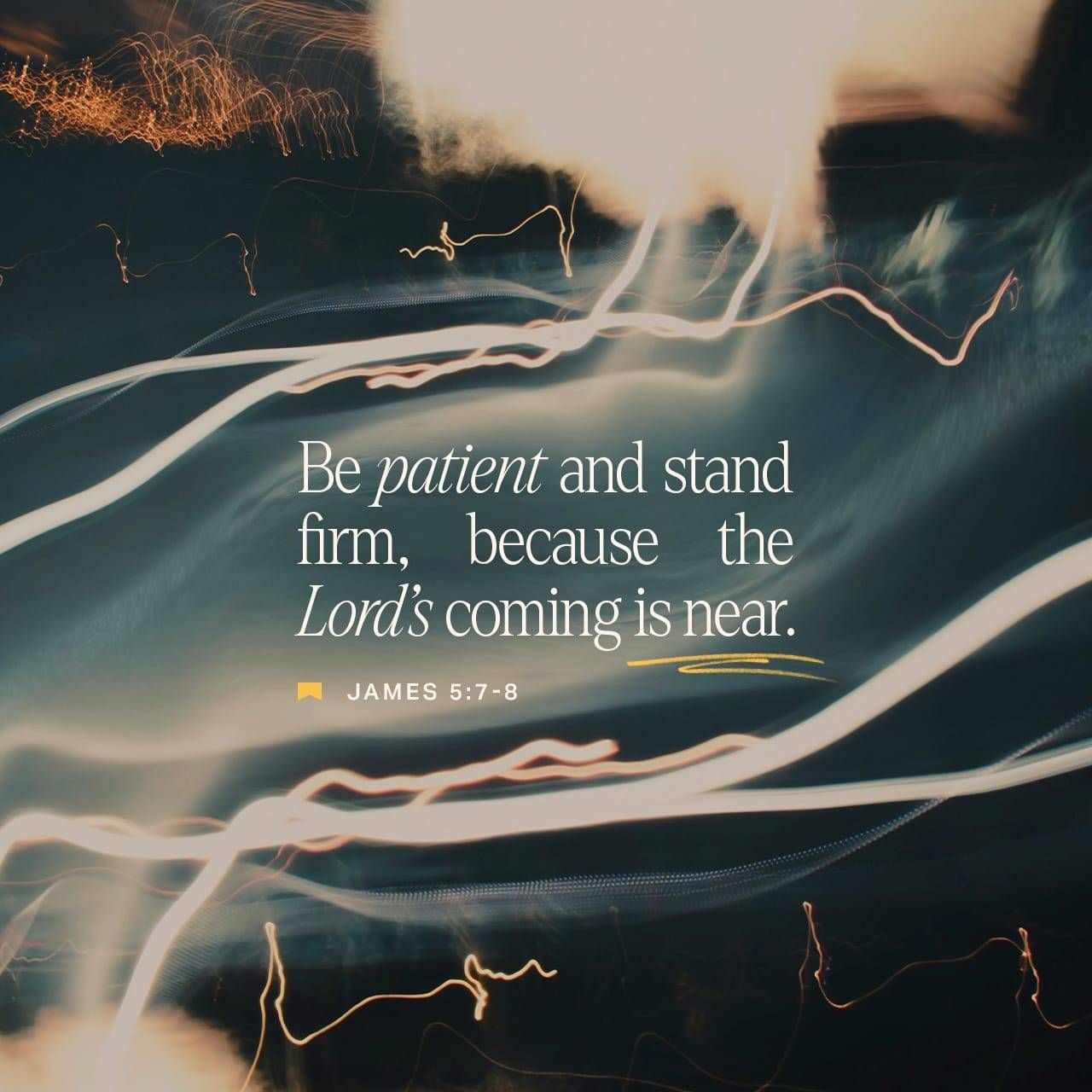 [8] You too, be patient and stand firm, because the Lord’s coming is near.