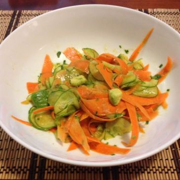 Cucumber & Carrot Salad with Avocado & olives Dressing